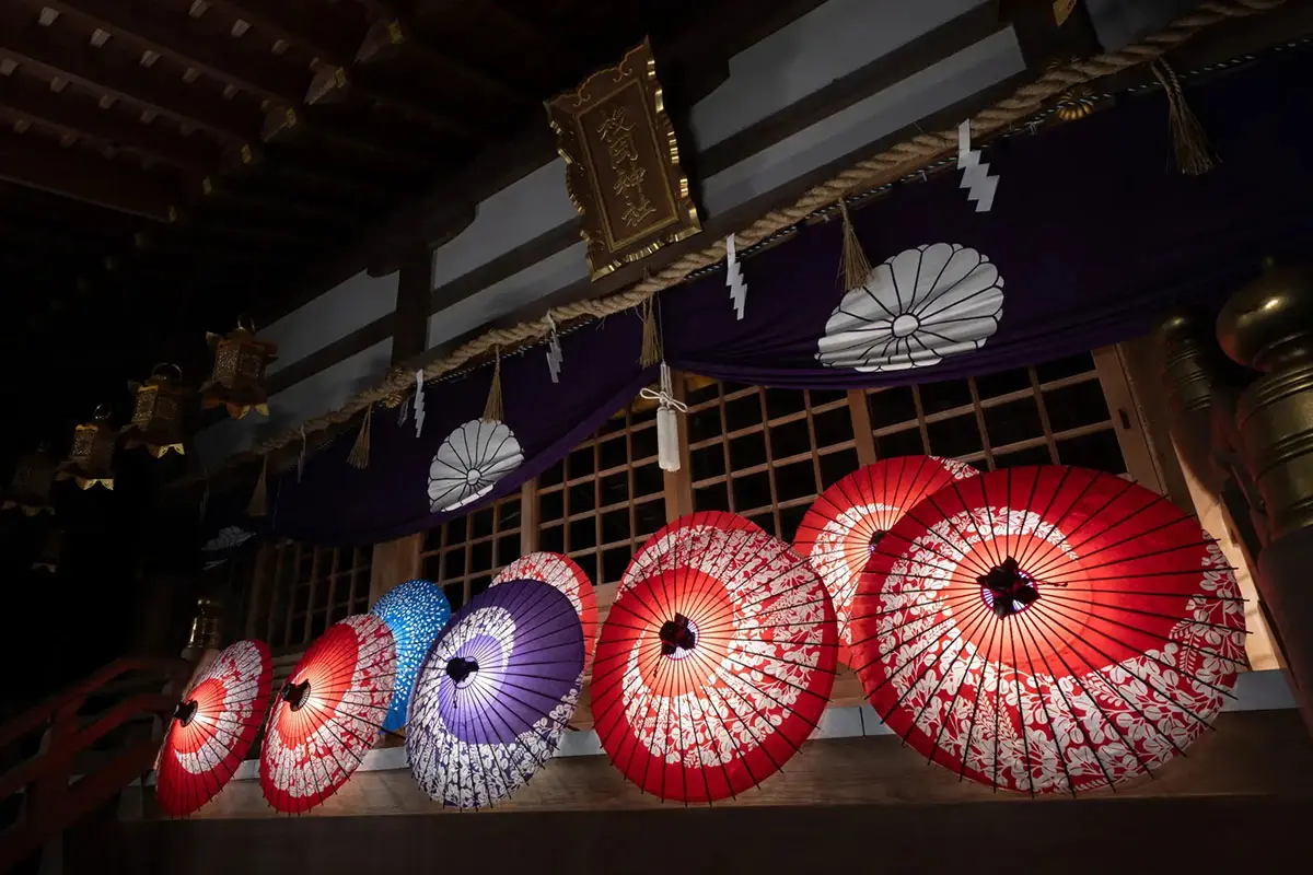 幻想的な和傘ライトアップ!東大阪・枚岡神社で「夏灯しの夢まつり」開催