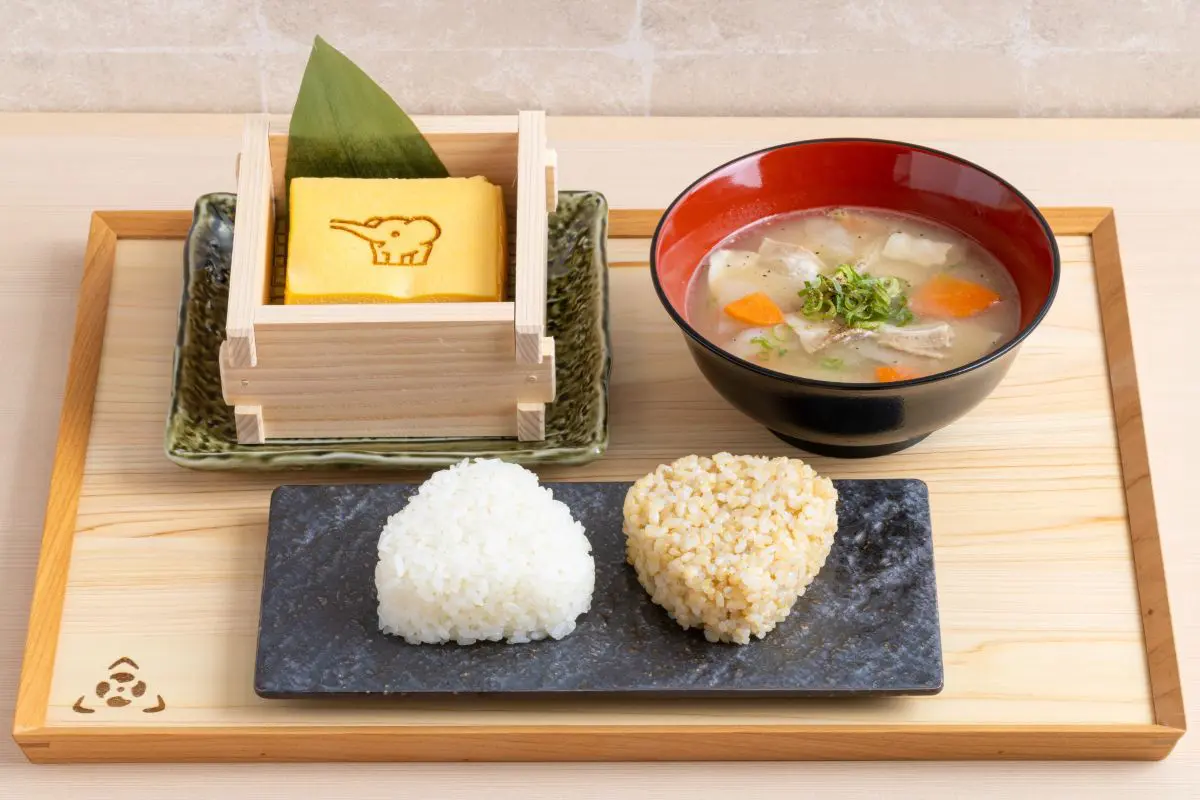 イートイン限定の「銀白定食」は、おにぎりの個数や種類を選べます。好みのおにぎりを組み合わせて、「だし香る玉子のせいろ蒸し」と「旨みあふれる具沢山豚汁」と一緒にいただくことができます。