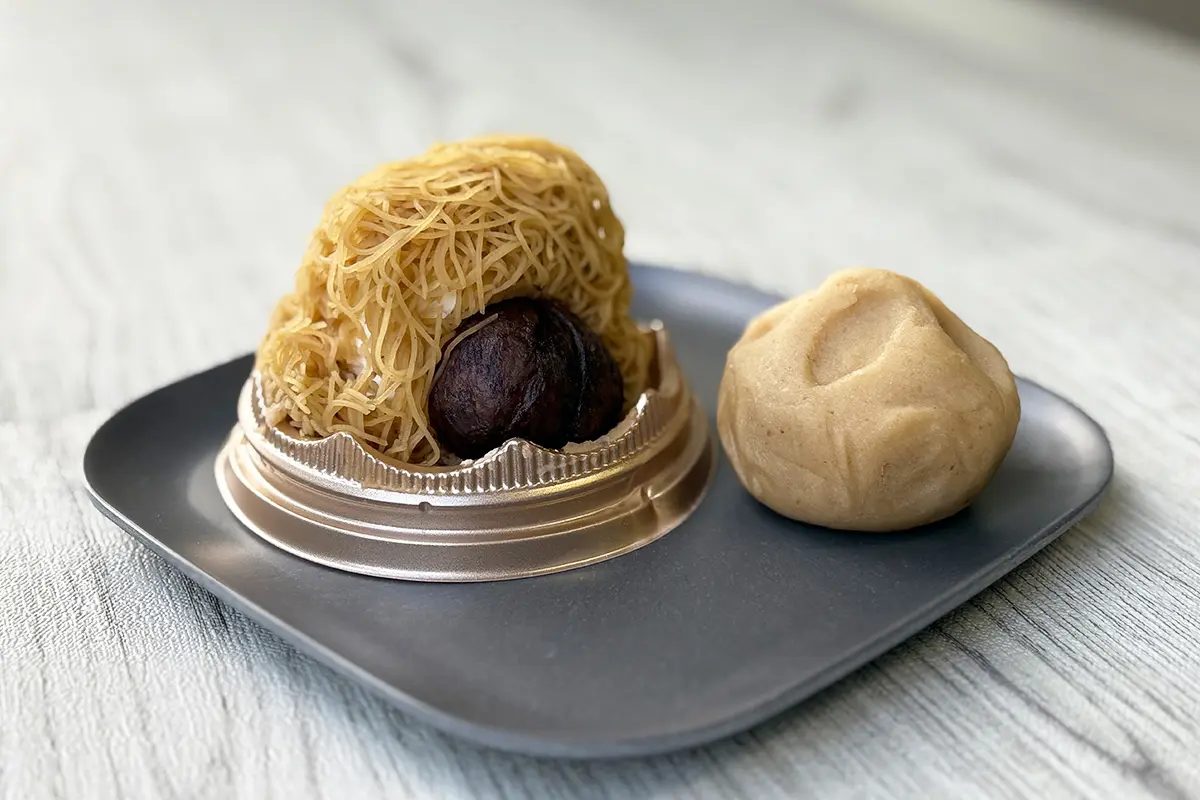 甘くなめらかな栗あんとモチモチふわふわのお餅の相性が◎! あまりの美味しさにぺろりといただけますが、食べ応えもしっかりとありますよ。