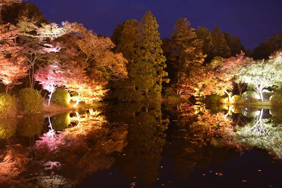 秋には色とりどりの紅葉をみせてくれる樹木が約1,000本も植栽されている植物園。今回のライトアップでは、園内の「なからぎの森」にある池の周辺を中心にライトアップされます。