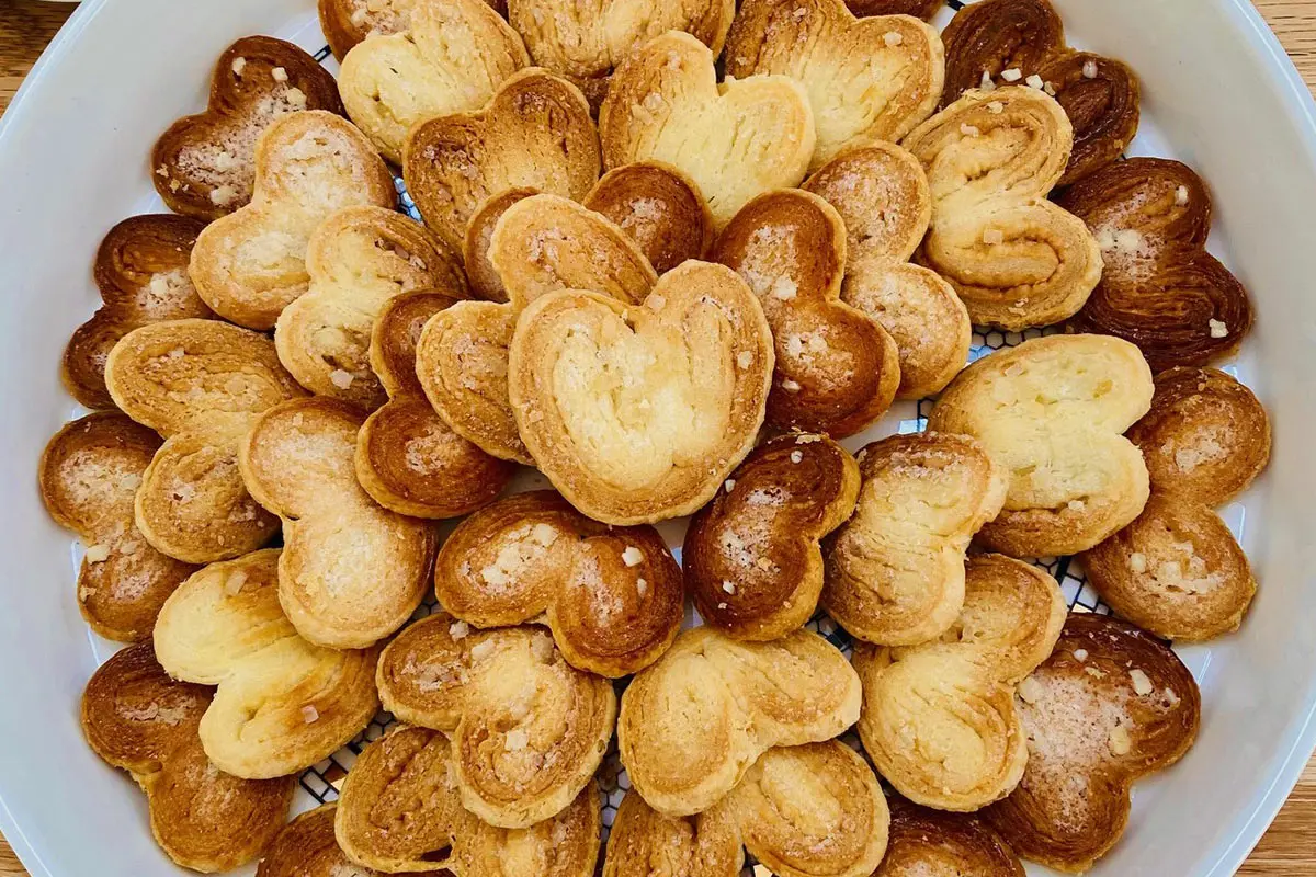 北海道産のバターを100%使用した、折り込みパイ生地のハート型のパイ「パルミエ」が看板スイーツ。そんな「パルミエ」は、味違いで5~8種類がラインアップします。