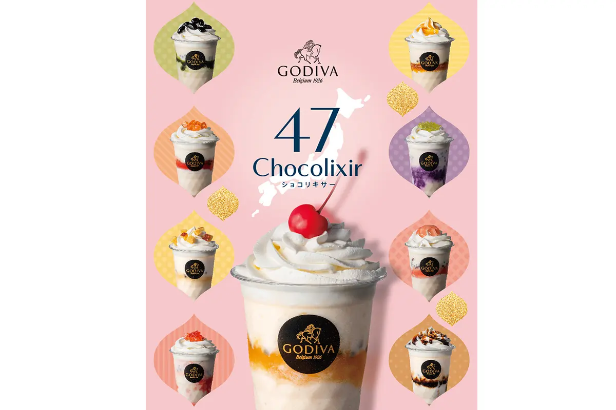 「阪急うめだ本店」(大阪府大阪市北区角田町)で開催される「阪急バレンタインチョコレート博覧会2026」に、日本各地の名産品をテーマにしたオリジナルチョコレートドリンク「ゴディバ 47 ショコリキサー」が登場! 2026年1月21日(水)~29日(木)までの期間限定で、全47種類のフレーバーが楽しめます♪