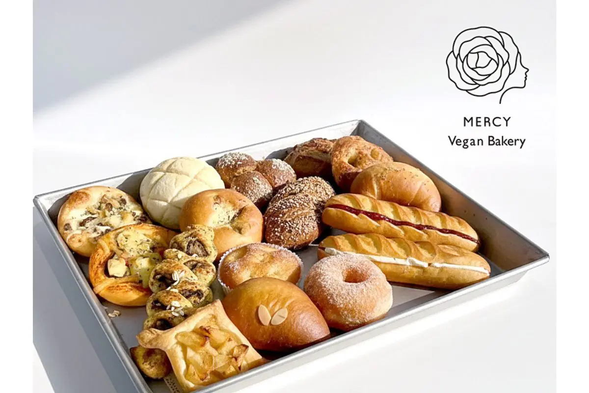 「MERCY Vegan Bakery」は、ヴィーガンレストラン「MERCY Vegan Factory」発のベーカリーで、卵・乳・小麦不使用のヴィーガン専門パン屋さんです。店頭に並ぶのは、その日の朝に焼き上げたパンのみで、売り切れ次第閉店します。