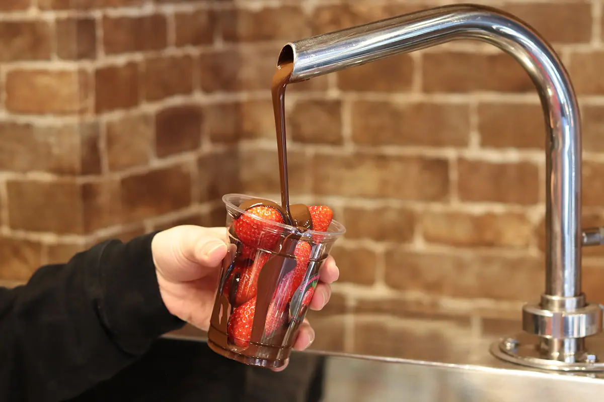 提供するのは、真っ赤な苺にとろりとしたチョコをたっぷりかけたビジュアルがSNSを中心に話題となっているストロベリーチョコ。