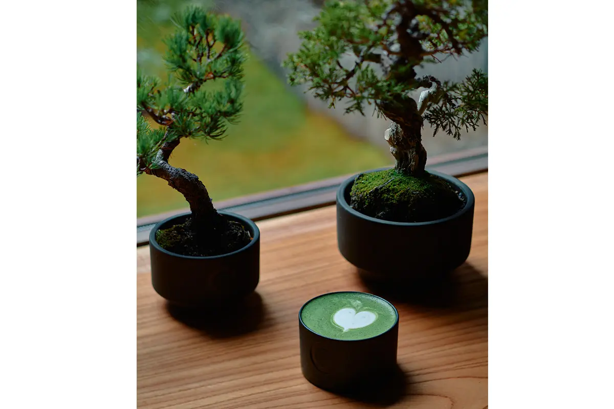 店内には植物や盆栽が配され、空間そのものが作品のような佇まい。国内外の工芸作家や現代アーティストの作品の展示を眺めながら、コーヒーやお茶とともに心静かに過ごすひとときを楽しめます。